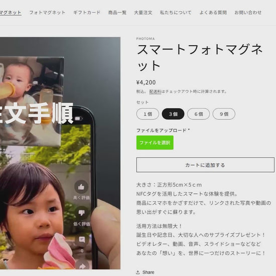 商品にスマホをかざすだけで、リンクされた写真や動画の思い出がすぐに蘇ります。
